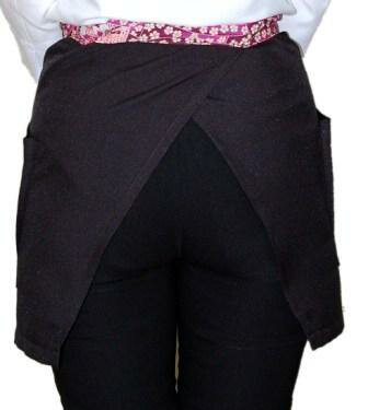 和風エプロン40cm丈 和柄帯使い サロンエプロン黒X紫 ヒモ【日本製】